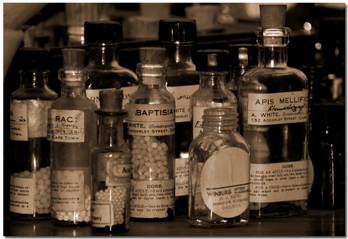 bottles with colored sugar water inside...